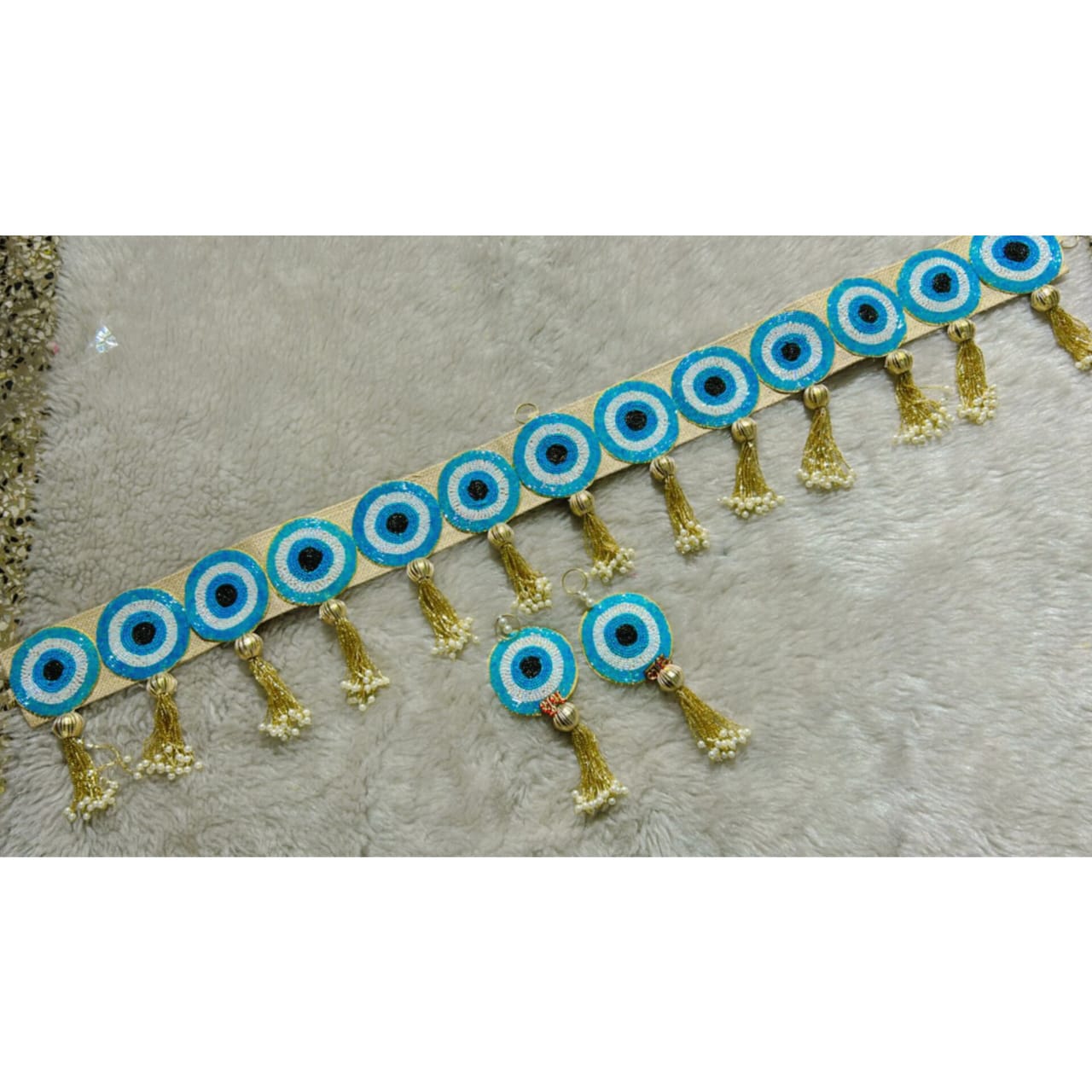 Bring a touch of protection and style to your Diwali celebrations with this decor combo featuring an evil eye toran and an evil eye door hanging. Designed to ward off negative energy and invite positivity, the toran is perfect for adorning your doorway, symbolizing a welcoming and auspicious entrance. Paired with a matching evil eye door hanging, this combo blends traditional beliefs with contemporary design, creating a harmonious and protective vibe in your home.