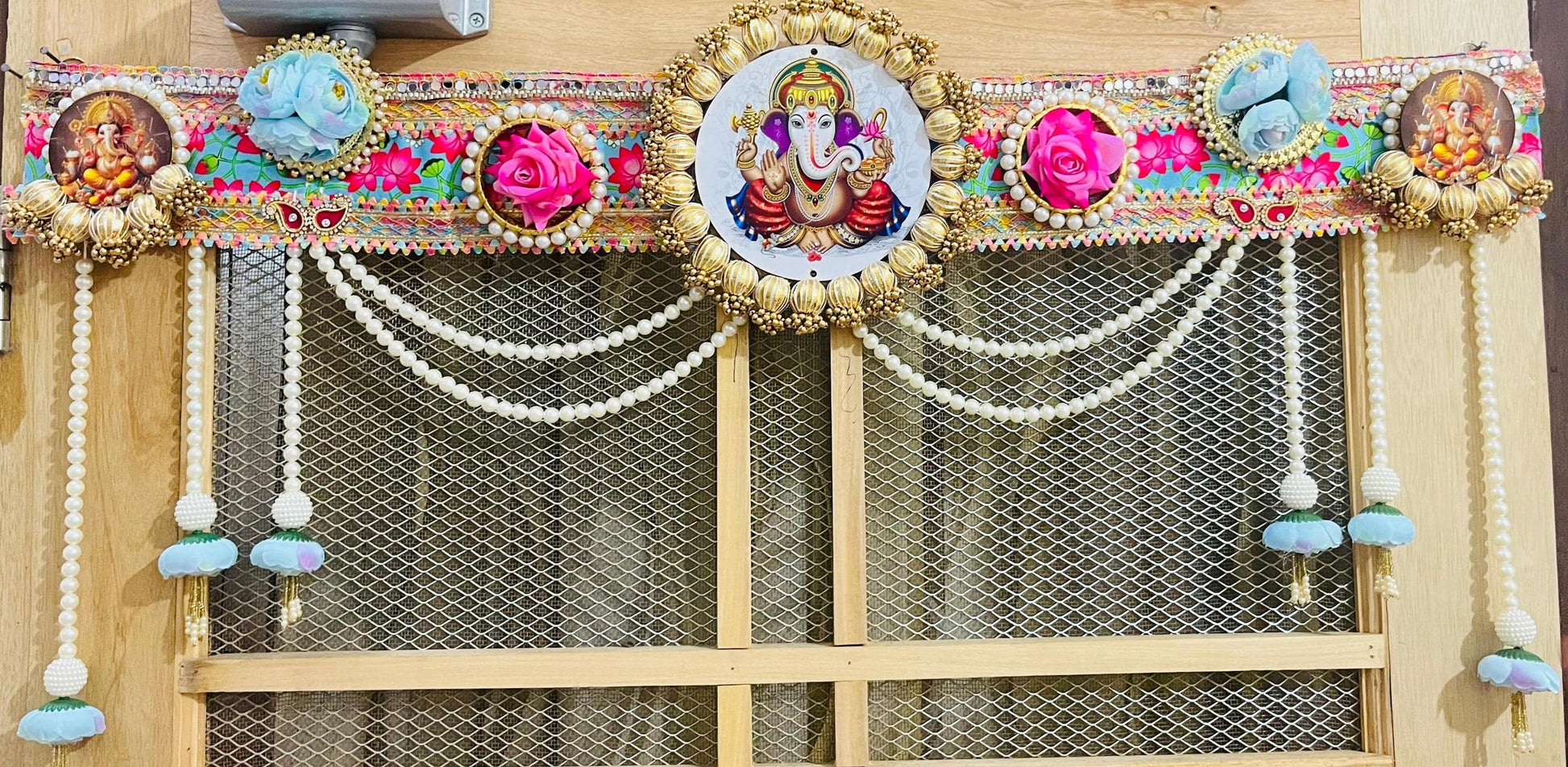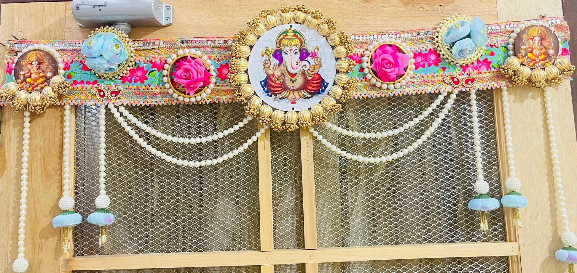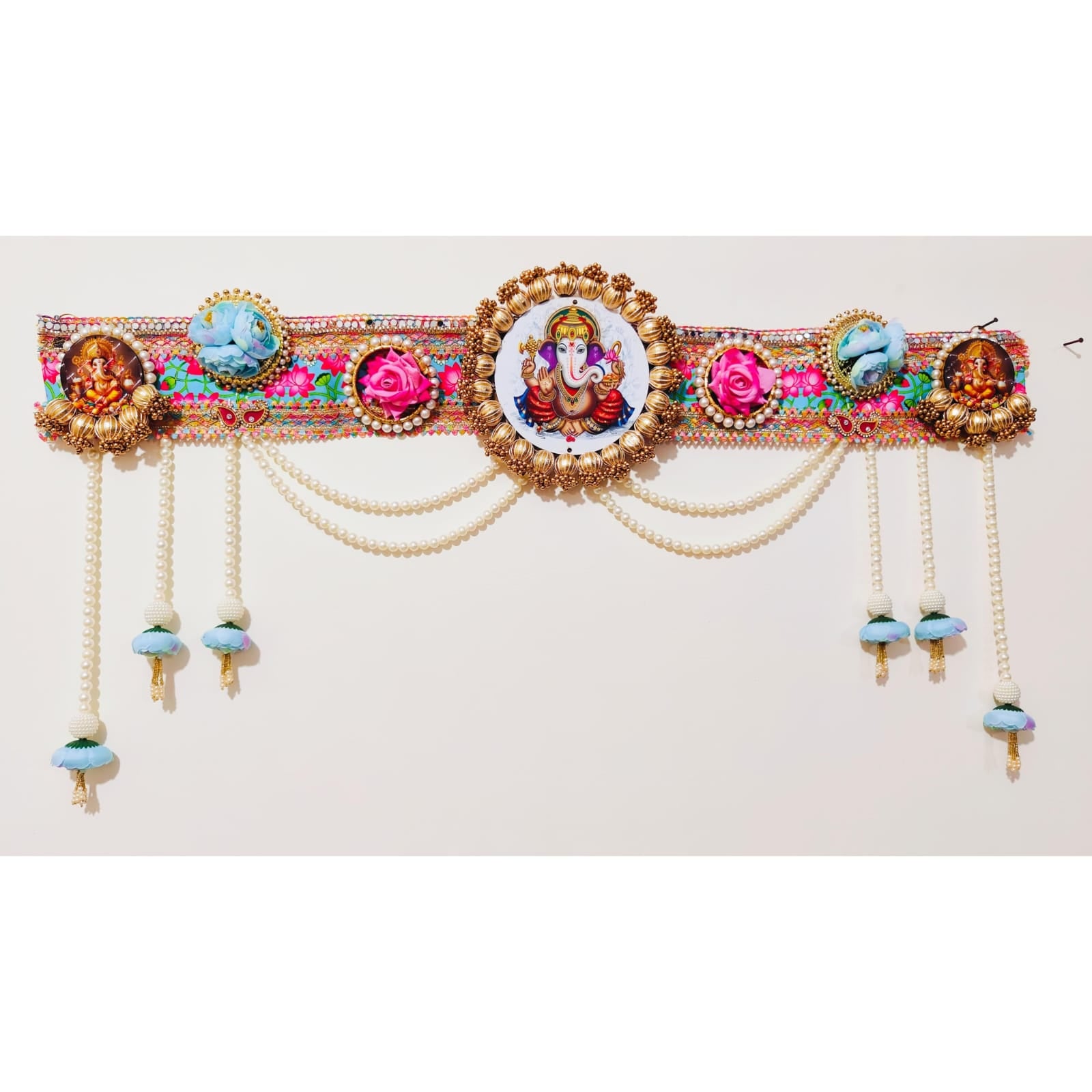 Elevate your Diwali celebrations with our enchanting Toran 3.0, featuring a beautifully crafted Ganesh Ji motif, adorned with vibrant roses and delicate pearl embellishments. This exquisite decorative piece symbolizes the blessings of Lord Ganesha, the remover of obstacles and harbinger of prosperity, making it a perfect addition to your festive décor. T