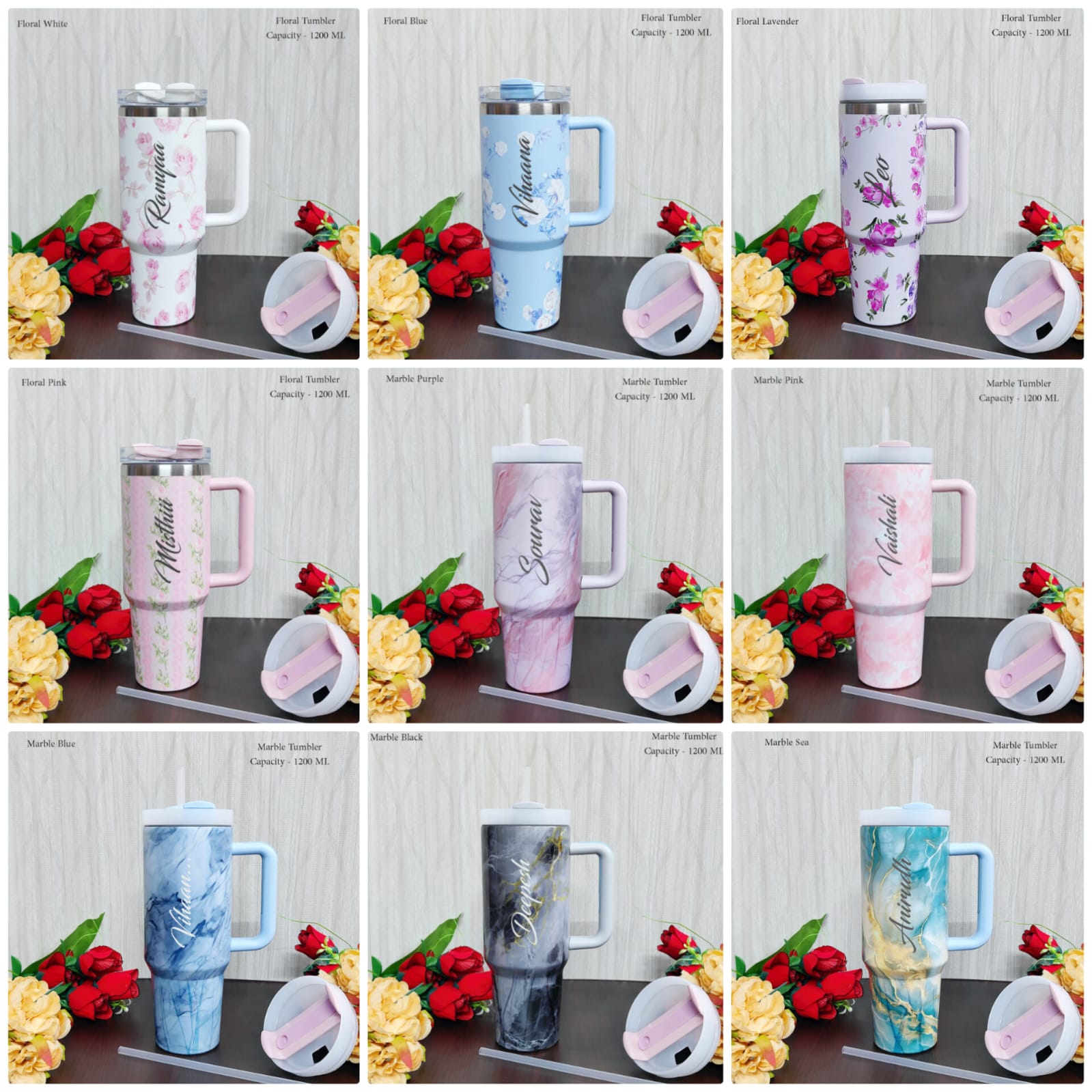 Sip in style with our premium Celebrity Tumbler 3.0, available in stunning floral and marble prints. With a generous 1200 ML capacity, built-in straw, and comfortable handle, it's perfect for staying hydrated at home, work, or on the go. Personalizable with names, it’s a chic and functional gift for any occasion!