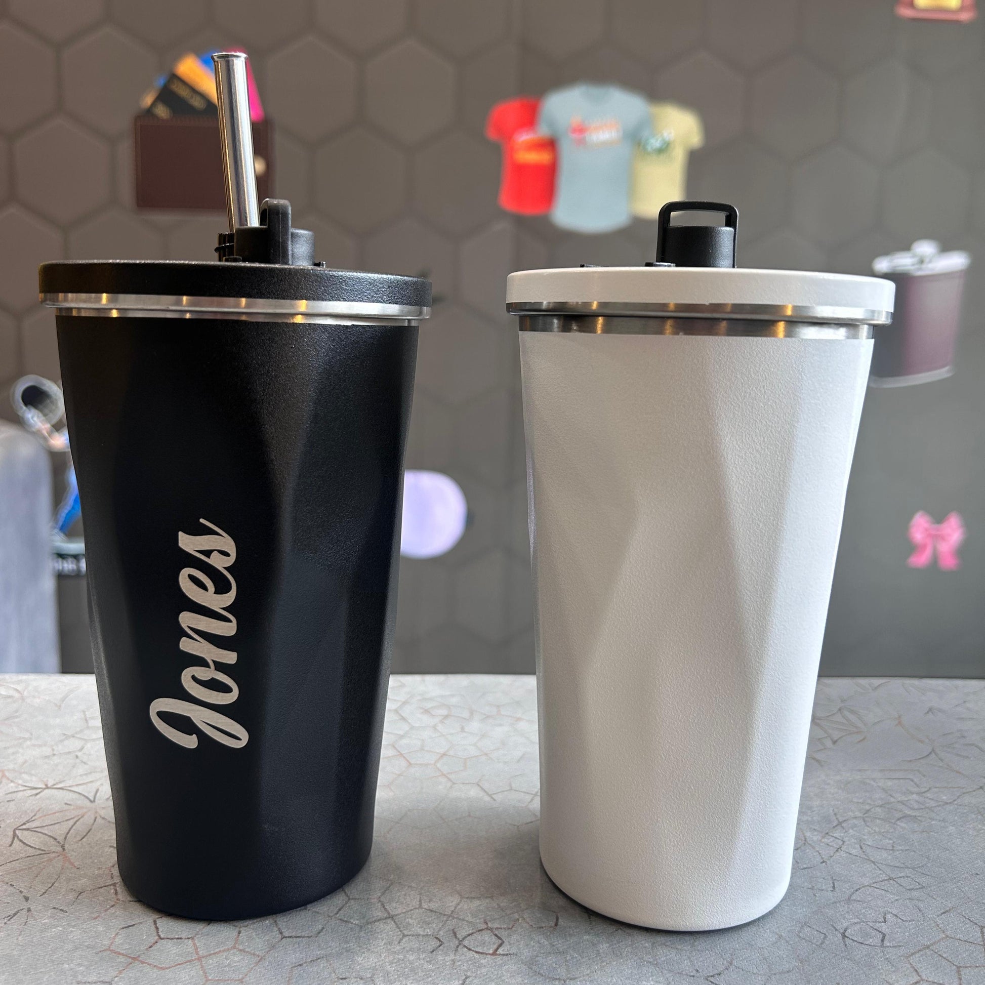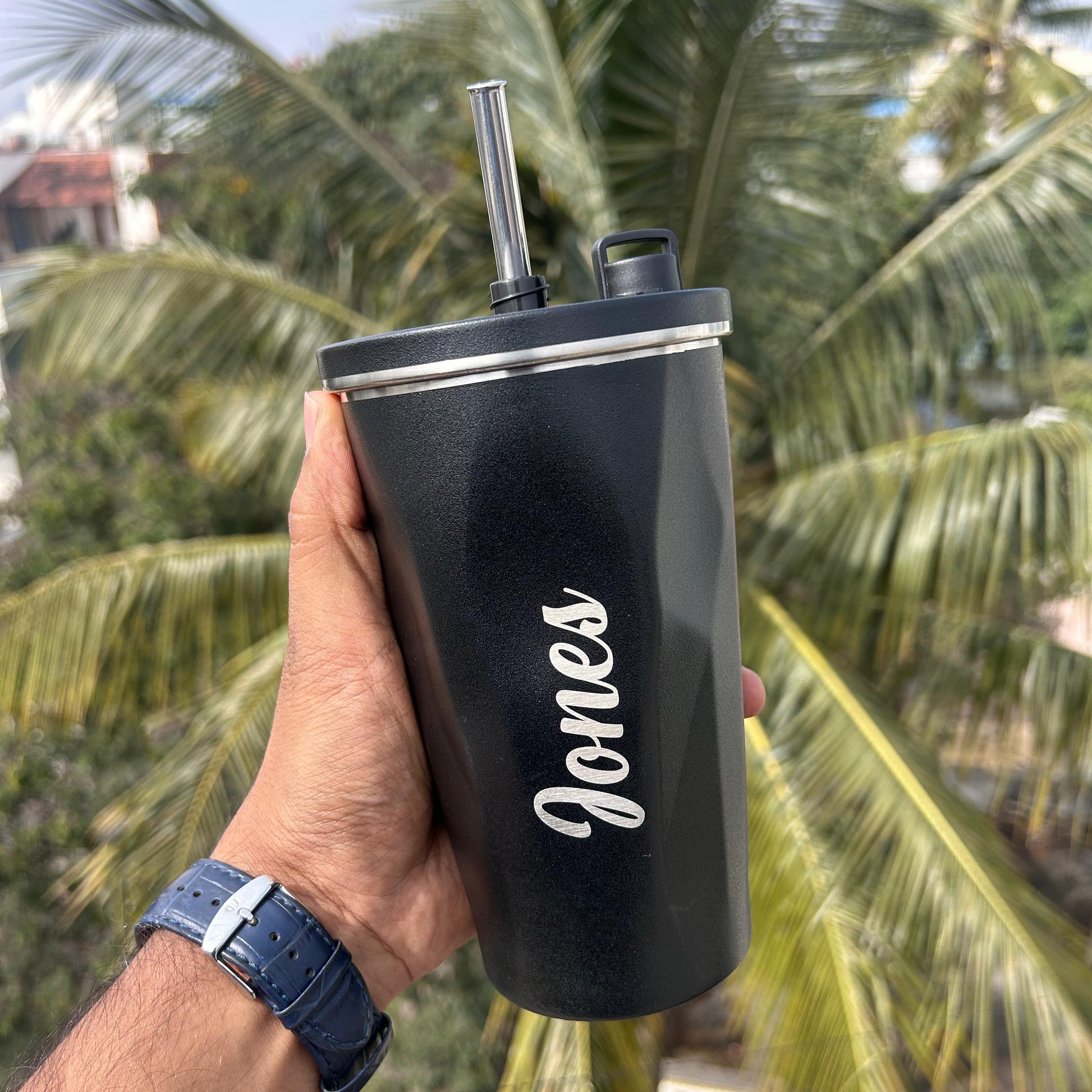 Scope of name customized on the tumbler.