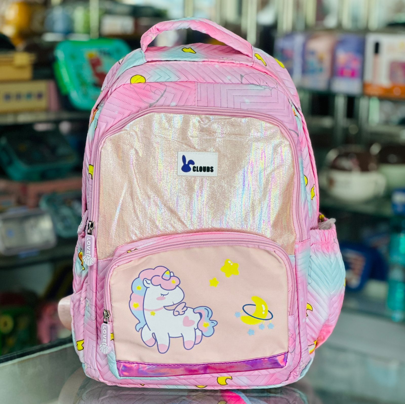 This magical unicorn-printed backpack is perfect for a school-going girl who loves a touch of whimsy in her everyday essentials. Its vibrant print features a playful unicorn, rainbows, and sparkling stars, bringing a sense of wonder to her school day.