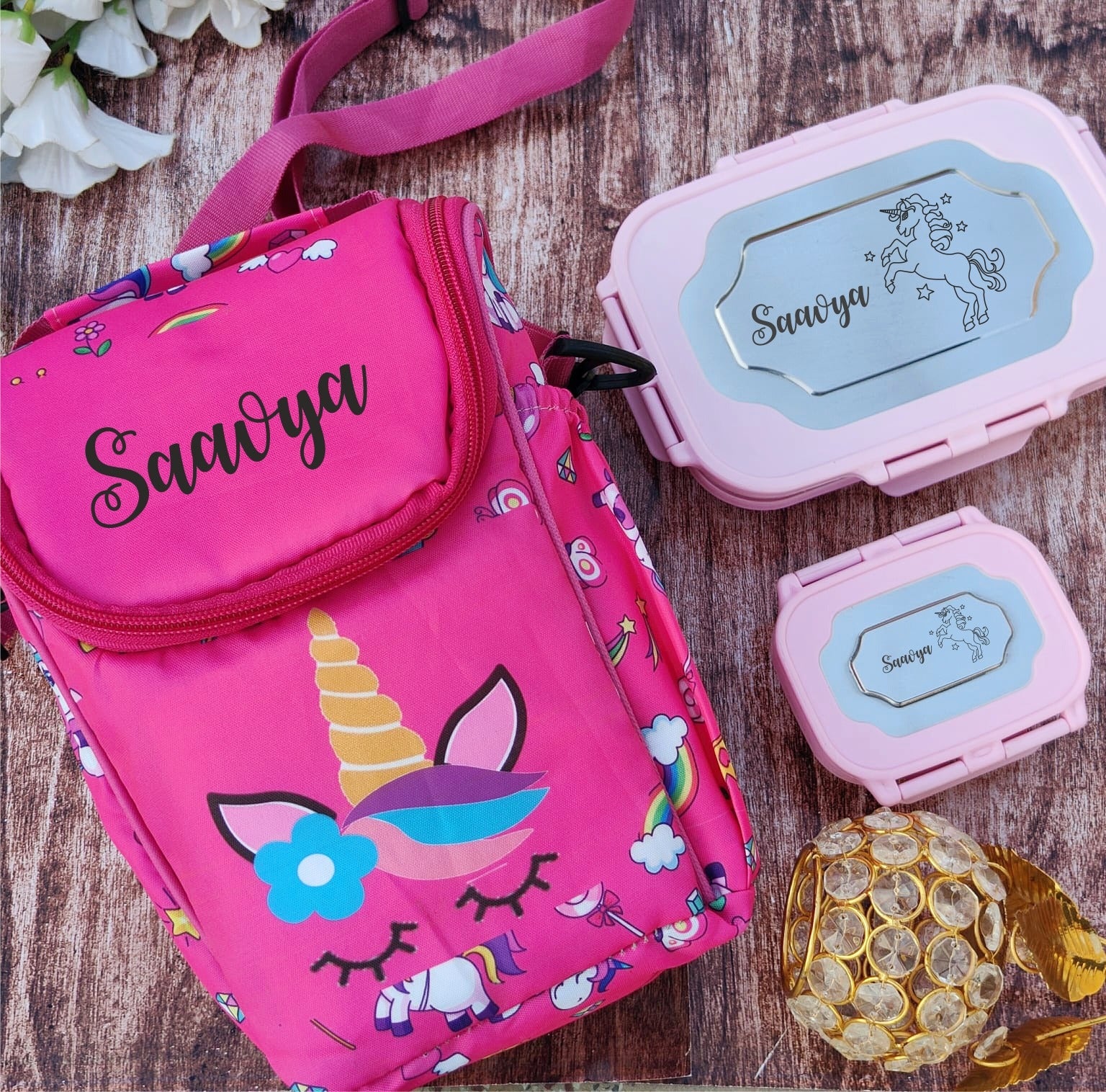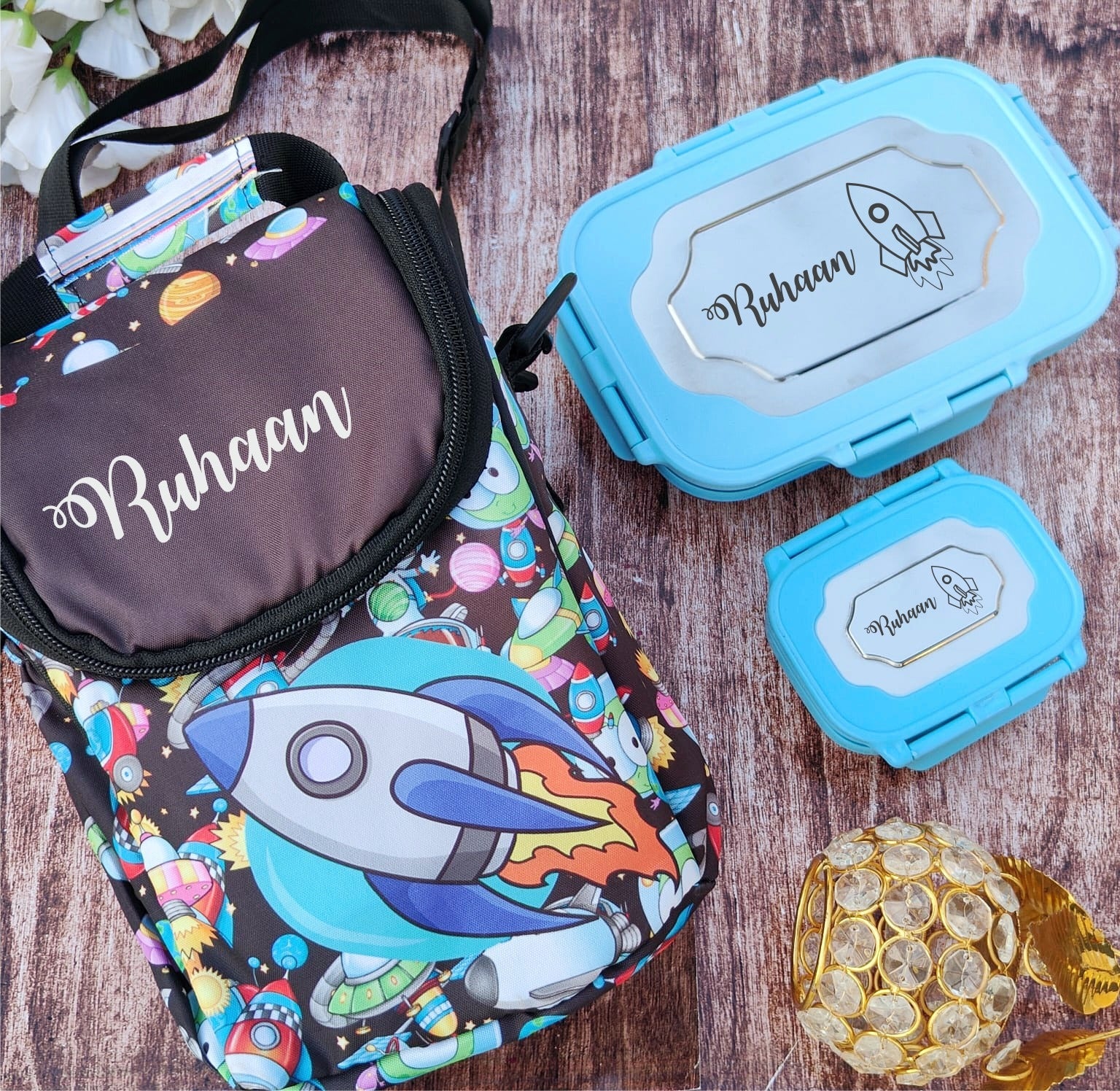 Make school days fun, organized, and extra special with our Personalized Utility Bag & Steel Lunch Box Combo – a perfect pick for kids! This adorable and practical combo includes a colorful, themed utility bag paired with a matching stainless steel lunch box set, both customized with your child’s name.