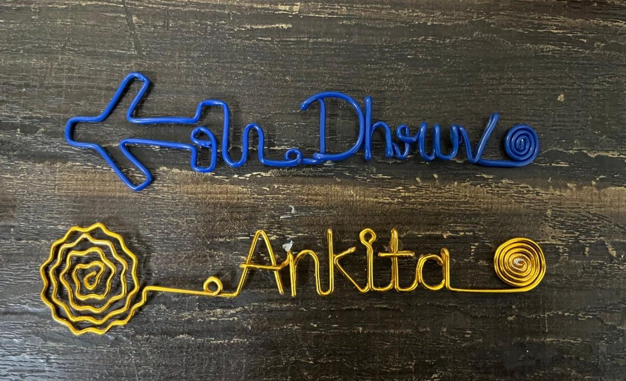 Make bookmarking more interesting with a classic wire art bookmark. It has a hand-drawn rose and a customized name and is rolled up at the end. It looks adorable to use up and is available in two colors of wires - black & golden.